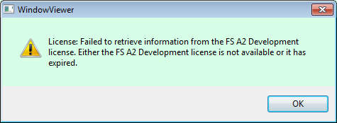 После перезагрузки компьютера перестал открываться WindowViever, при запуске выдает "License: Failed to retrieve information from the FS A2 Development license. Either the FS A2 Development license is not available or it has expired."(фото во вложении).