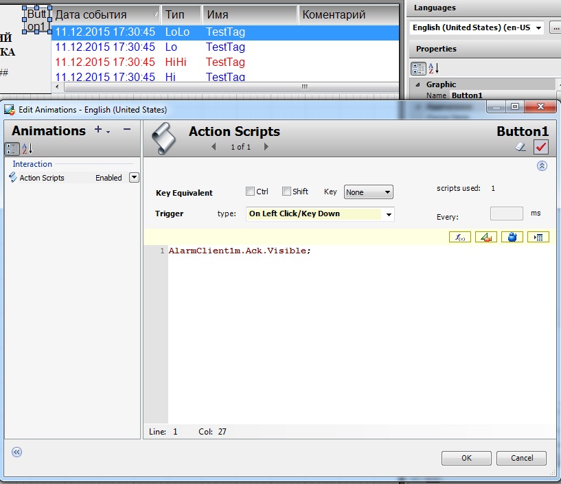 Объясните пожалуйста предельно ясно, новичку в данном продукте, как сделать сигнализацию алармов, чтобы по подтверждению оператором, они отключались. Также столкнулся с таким вопросом как "куда писать сам скрипт?"