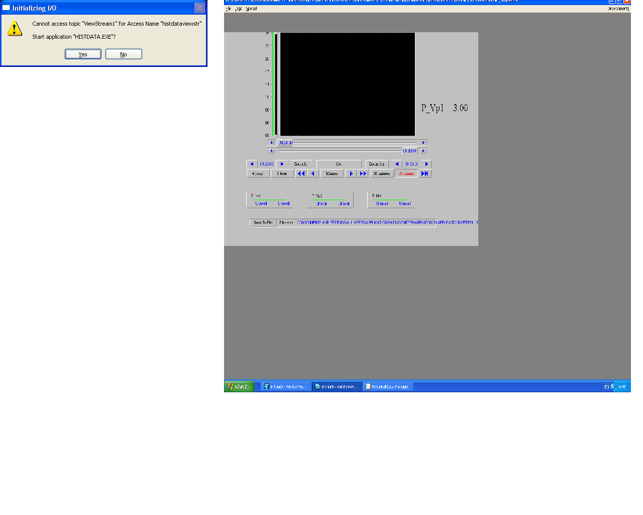 3. Рис.2. Разберитесь с окном ошибки. Special - Access Names. Системе не нравится топик ViewStream1 в Access Name = HistDataViewStr. Судя по всему, Вы пытаетесь в этом Access Name подключиться к утилите HistData (правда, не знаю зачем). Попробуйте обойтись пока без этого.
