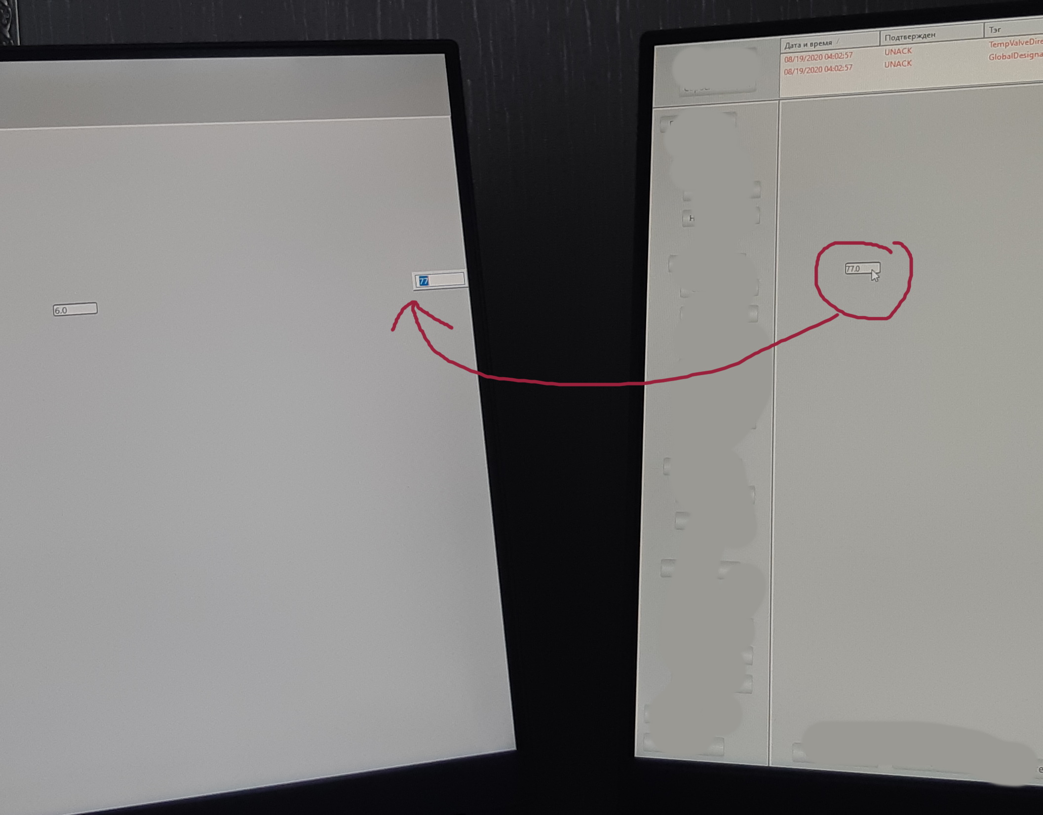 Экран СКАДы занимает два монитора (Общее разрешение 3840 на 1080).