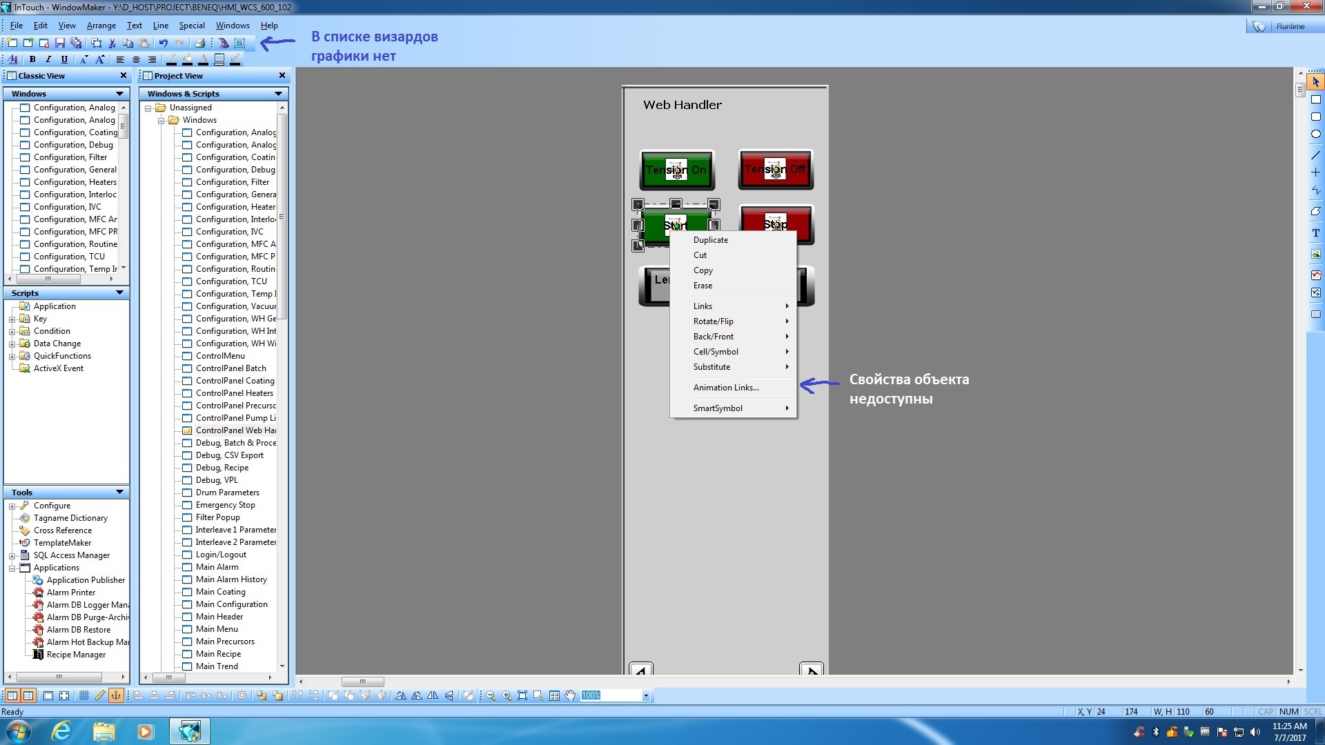 Принесли проект слегка подправить, WindowMaker его открыл, но там большинство объектов - типа Archestra Grafic.