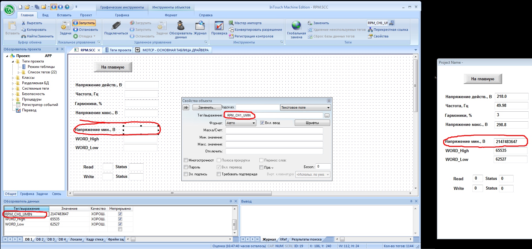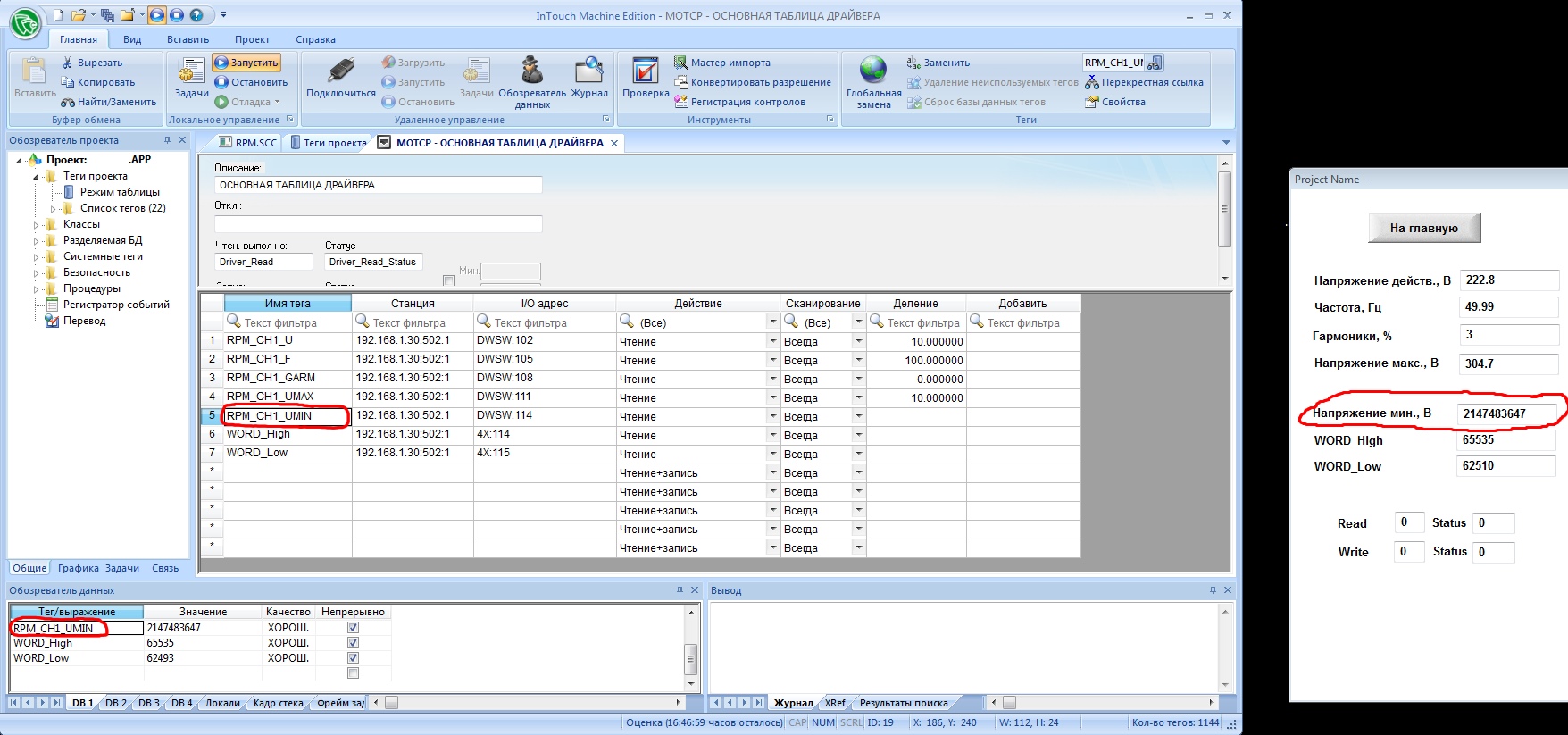А главный вопрос - почему InTouch МЕ не отображает так, как это должно быть по логике?