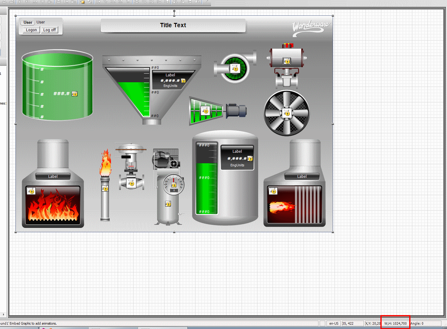 Здравствуйте! Допустим, у меня есть окно в InTouch размером 800х600. Я хочу нарисовать в ArchestrA символ, который как раз все окно займет. Как мне это сделать? Поискал в редакторе ArchestrA графики, изменения размера холста не нашел. Объясните, пожалуйста, как это делается?