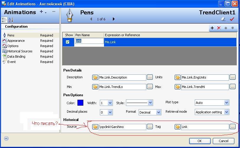 - Настройки RealTime Trend. В InTouch у нас отображается только начиная с текущего момента времени.