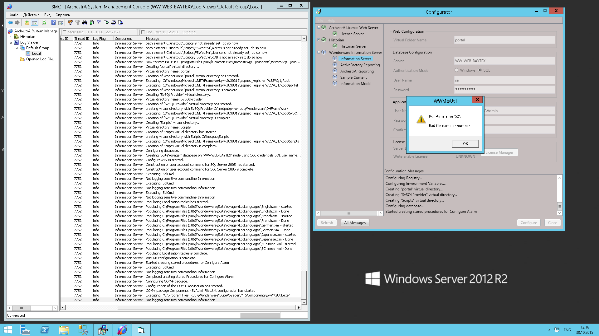 При конфигурировании WIS вылазит предупреждение - 52. ругается на MTS. Согласившись с данным предупреждением установка завершается нормально. Выполняя Refresh ни каких ошибок в конфигураторе ну вылазит.