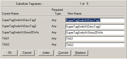 После вставки символа в InTouch делаю Substitute tags - меняю TAG на имя нужного тега и все указанные поля к нему привязываются.