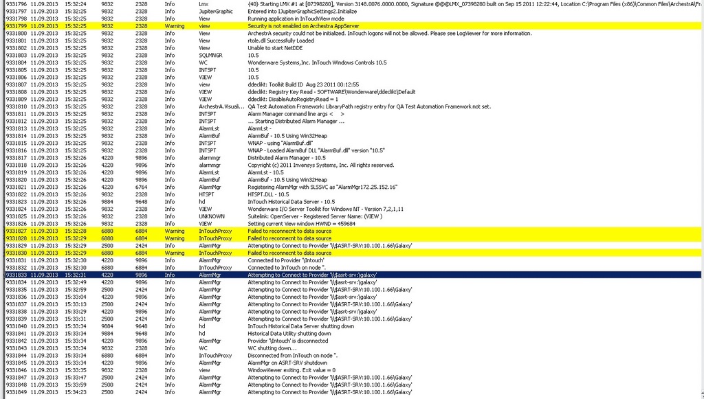 Вопрос отображения тревог и событий уже много раз задавался и обсуждался, но моего случая я не встретил. Знатоков прошу помощи.