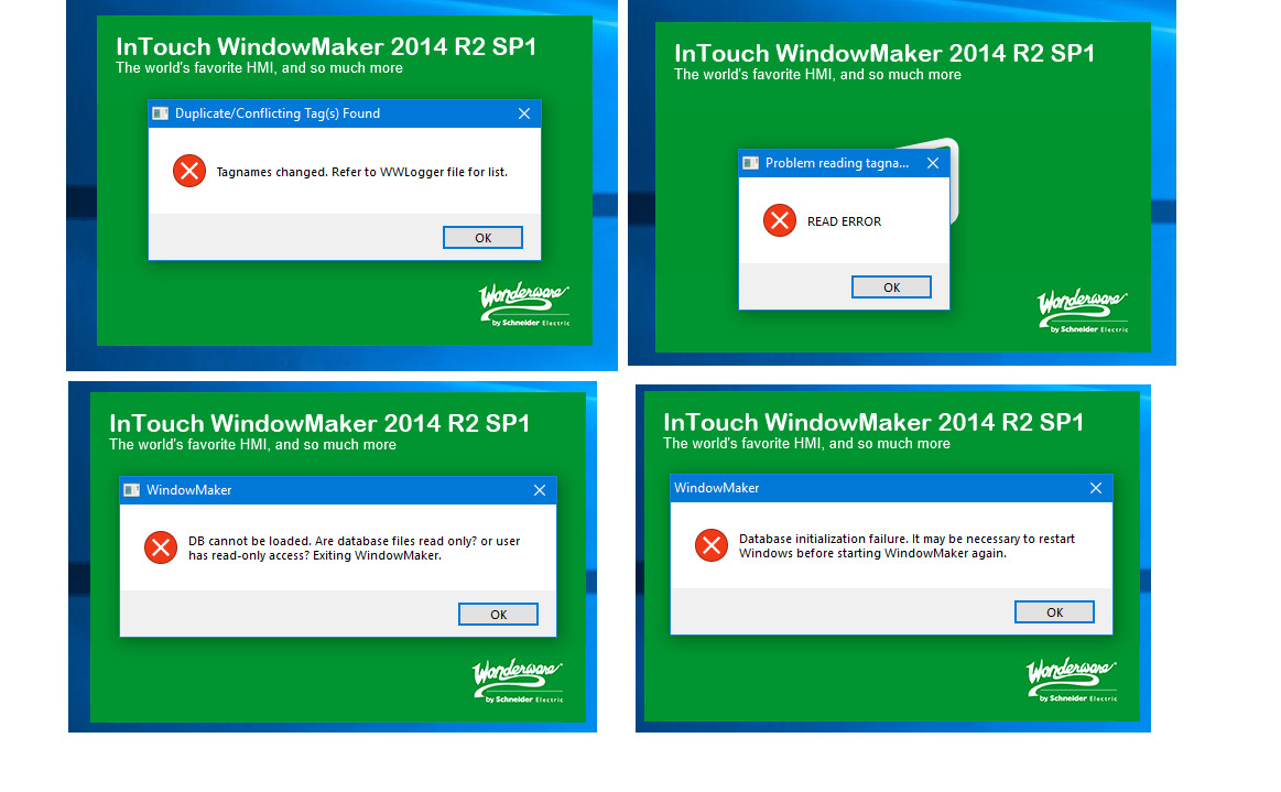 выдает ряд аварий (список и принскрины ниже) после чего InTouch закрывается, т.е. миграция не окончена.