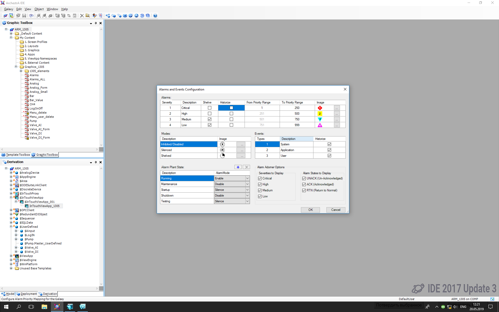 Проект развернут в галактике Archestra IDE, визуализация через InTouch APP.