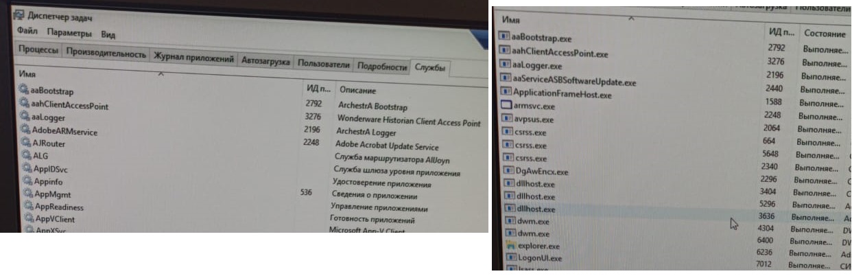 Фото 4 - Службы и процессы клиента, 5-Установленное ПО клиента, 6- Установленное ПО Инженерной станции.