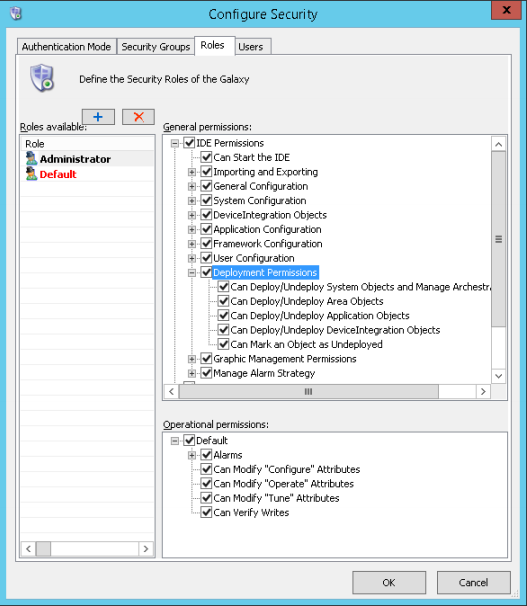 - На первый взгляд казалось все просто. Создал группу в "Security Groups", закинул туда нужные шаблоны и экземпляры( хотя в больших объемах это не очень просто) затем создал новую "Role", в ней поставил галочку в "Operational permissions" для созданной ранее группы, и дал ей все "General Permissions", затем создал новую учетку, и этой новой учетке дал созданную роль. "Default" роль лишил всех галочек.