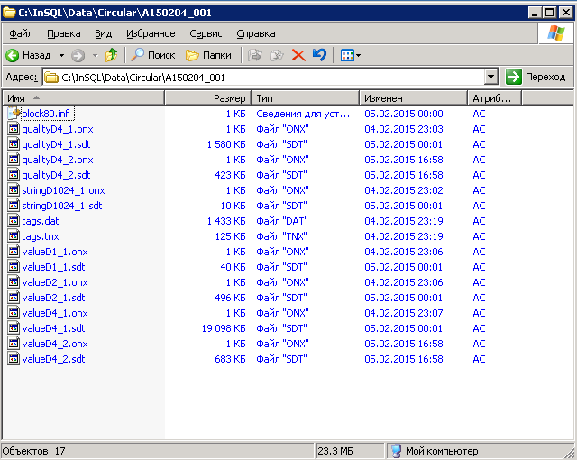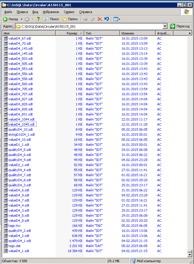 Стоит InSQL версии 9.0.1.0369. Количество тэгов total = 3436. Архивные блоки в папке Circular занимают ~20-25 Мб и имеют внутри по 17 файлов. Но по пока неустановленным причинам(возможно перебои поступления данных) в архивных блоках за некоторые дни число файлов очень велико (например 10965, 29321, 131129, 236137). В сумме( в папке Circular) получается больше 7млн. файлов. Вопрос: возможно ли какая-нибудь оптимизация с целью уменьшения числа файлов без потери архивных данных?