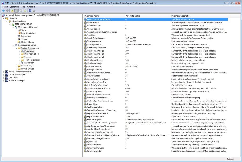 Версия Historian Server 10.0.101.0112. Проблема в следующем данные ложатся с OPC сервера. При просмотре Historian Client в демо режиме за 2 часа показываются данные примерно за сутки. Судя по тренду старые данные затираются. Исторические блоки создаются. При запросе за определенную старую дату график пустой. Режим сохранения циклический 1 сек.