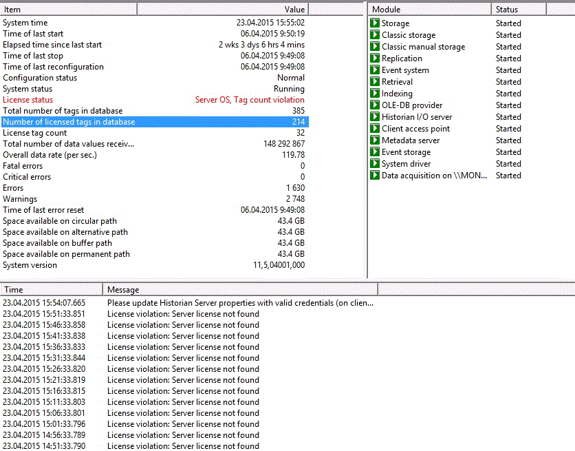 Historian - License Status - Server OS, Tag count violation