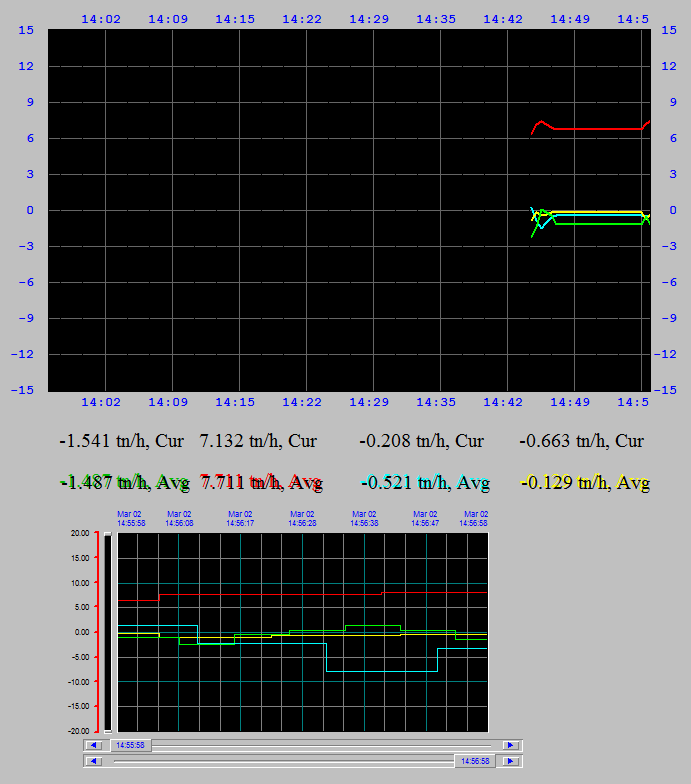 Мне нужен график в реальном времени разницы расходов прямой и обратки теплосчетчика. В HistTrend-е с периодическим апдейтом идёт неудобоваримая "пила", я хочу видеть усредненный график, скажем за минуту. Попробовал сделать так, из HistTrend беру PenAverageValue и использую в Real Time Trend. Всё работает, но только когда окно приложения не свернуто. Если свёрнуто идет прямая линия.