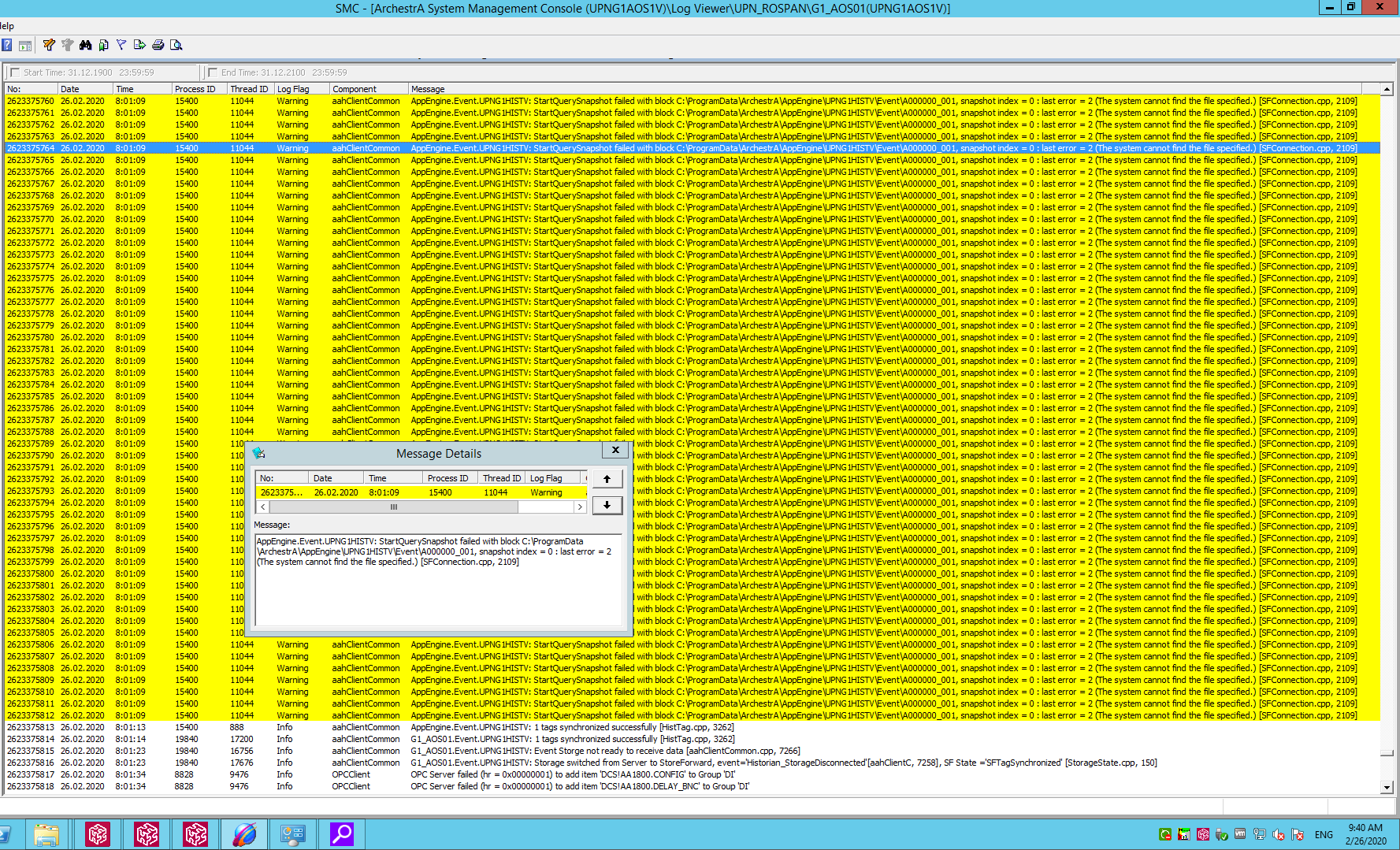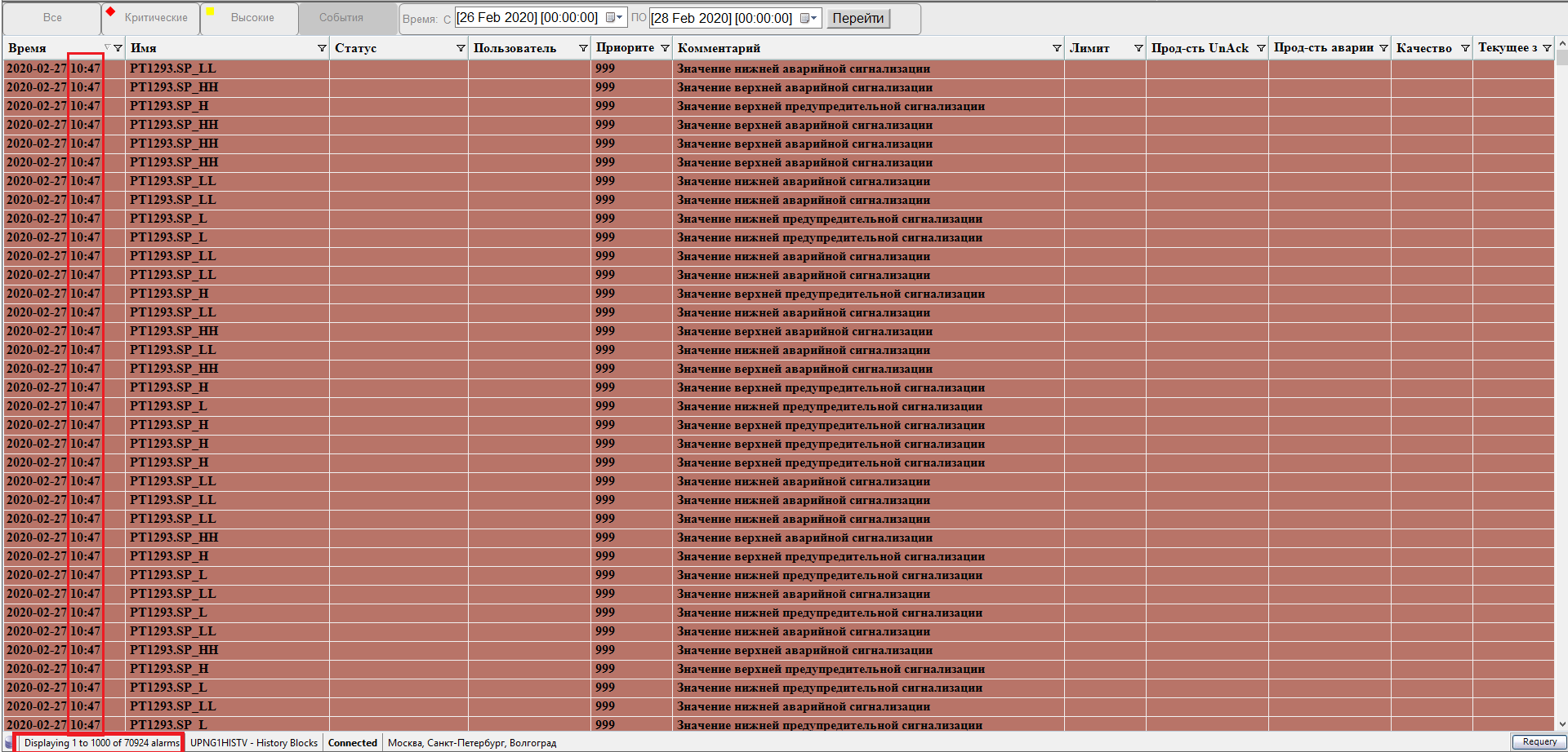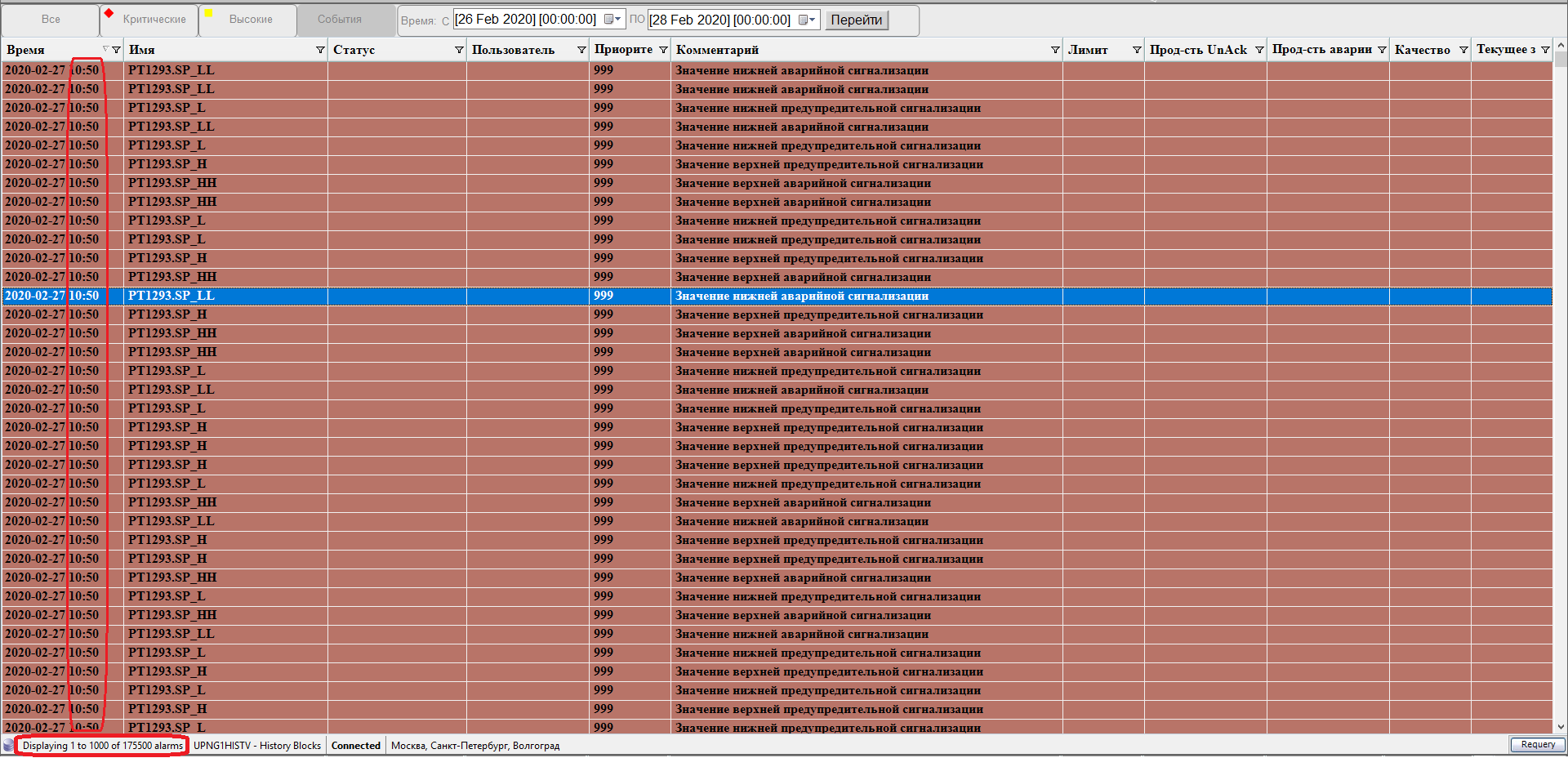 А для настройки Historical Alarms and Events пишем уже машину G_Hist(где хисториан) и к базе A2ALMDB контролка не коннектится, выбираем History blocks и все прекрасно коннектится, но почему-то в рантайме то данных нет, то я вот пока писал эту поэму, перещелкнул мнемосхемы, данные появились, только по времени какие-то расхождения.
