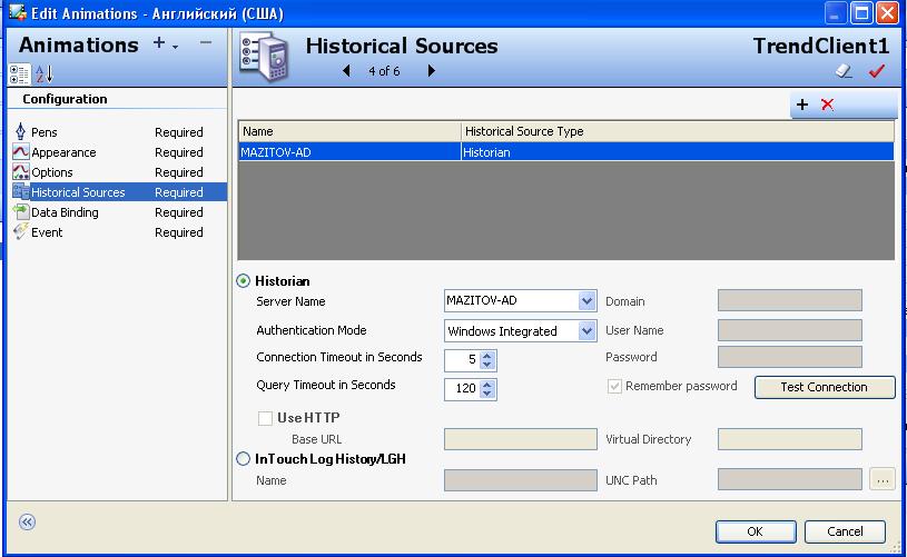 Настройки RealTime Trend. В InTouch у нас отображается только начиная с текущего момента времени.