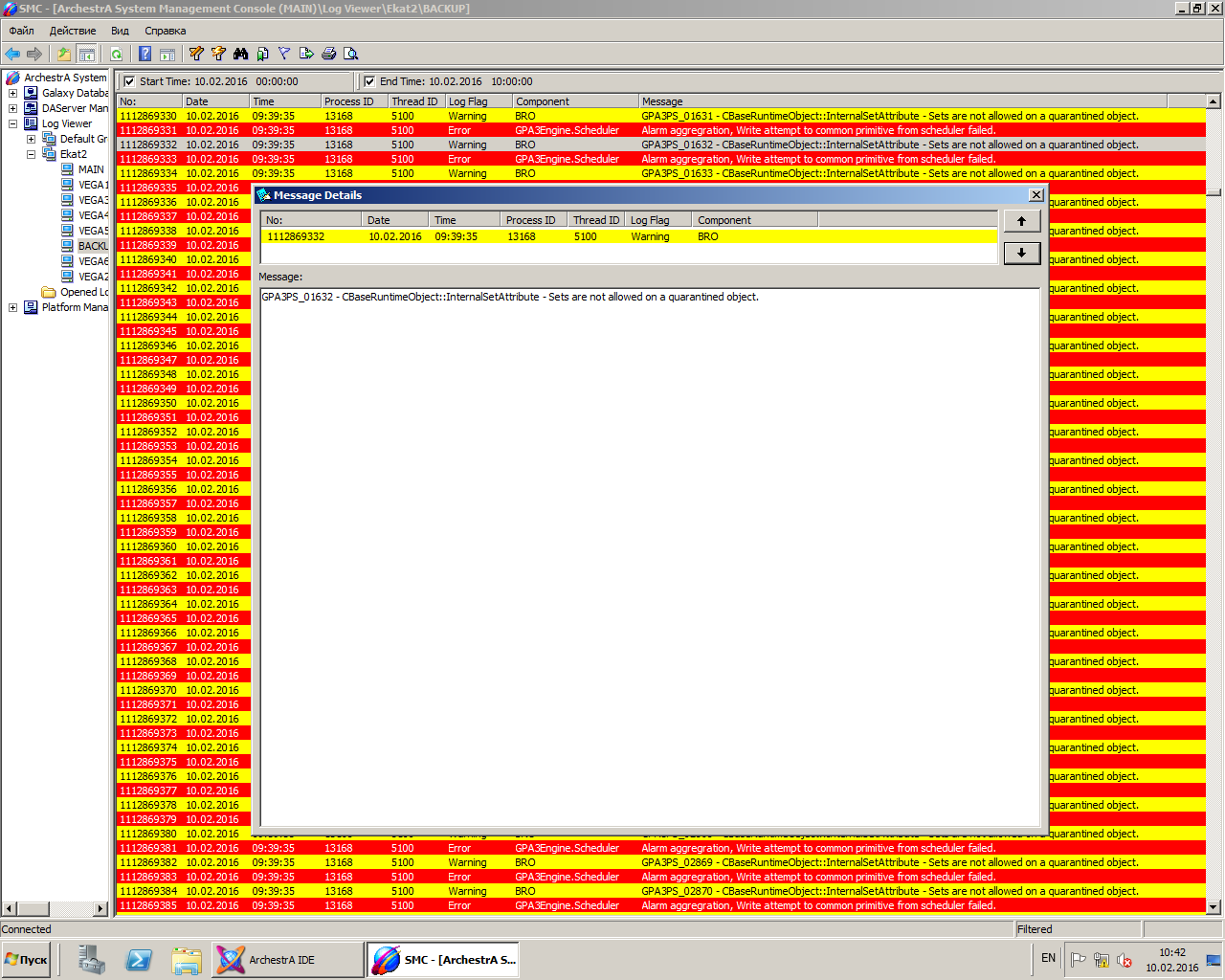 периодически возникает такая проблема: на одном из Engine ряд объектов (дискретных) отваливается в состояние quarantined, в результате чего пропадают события. Причём происходит это совершенно произвольно. Каких-то манипуляций сменный персонал в это время не производит. на данный момент лечат редеплоем, но, сами понимаете, это не выход.